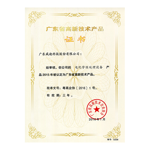 2015年廣東省高新技術產品-電化學預處理系統