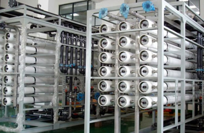 EDI裝置是將離子交換樹脂充夾在陰/陽離子交換膜之間形成EDI單元。利用樹脂制備高純水,利用水電解產(chǎn)生的H+、OH-離子在膜堆內(nèi)再生失效的樹脂。因此EDI系統(tǒng)不需要酸堿再生且能連續(xù)生產(chǎn),系統(tǒng)自動(dòng)化程度高。
