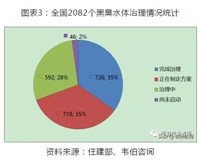從現有上市公司接單來看,2016年已拉開治理黑臭水體投資的序幕,2015年公布的《水污染防治行動計劃》要求:到2020年,地級及以上城市建成區黑臭水體均控制在10%以內;到2030年,城市建成區黑臭水體總體得到消除。而根據生態環保規劃“十三五”規劃,預計未來3年將是黑臭水體治理達標期限的高峰年,假設我國尚未完成的1356個水體全部在“十三五”期間完成治理,每個水體平均投入3億元計算,2017年到2020年,全國黑臭水體治理市場規模為4068億。
