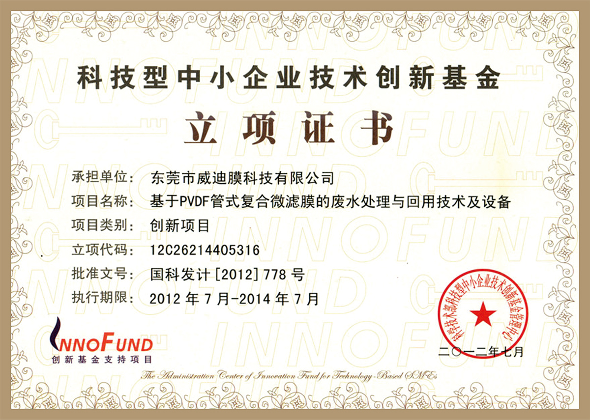 國(guó)家創(chuàng)新基金立項(xiàng)證書(shū)